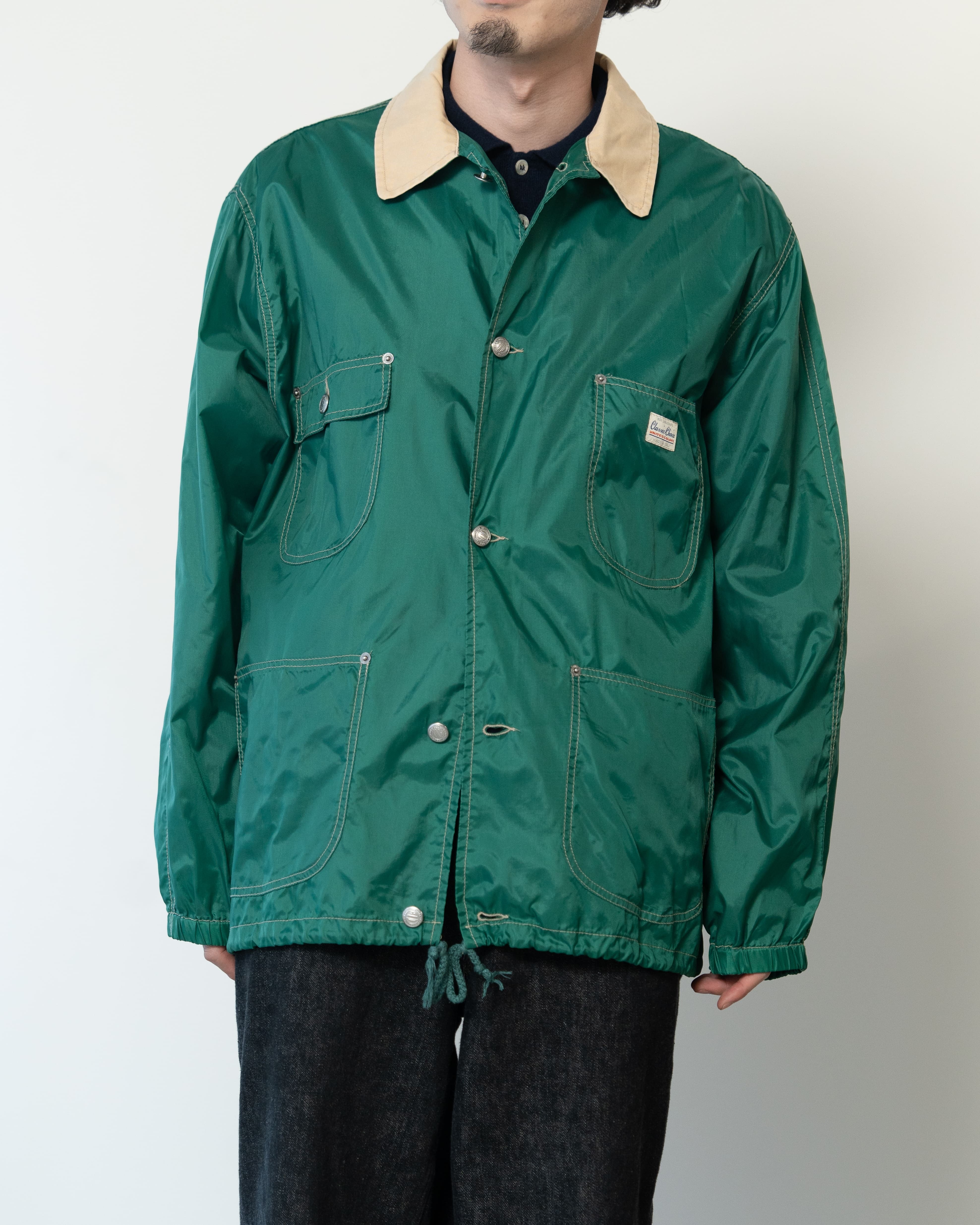 デザインのアクセントになっているのは、コットン素材で切り替えられた襟元。ボディとの微妙な素材感の違いが、ワークジャケット特有の力強さを程よく和らげてくれています。