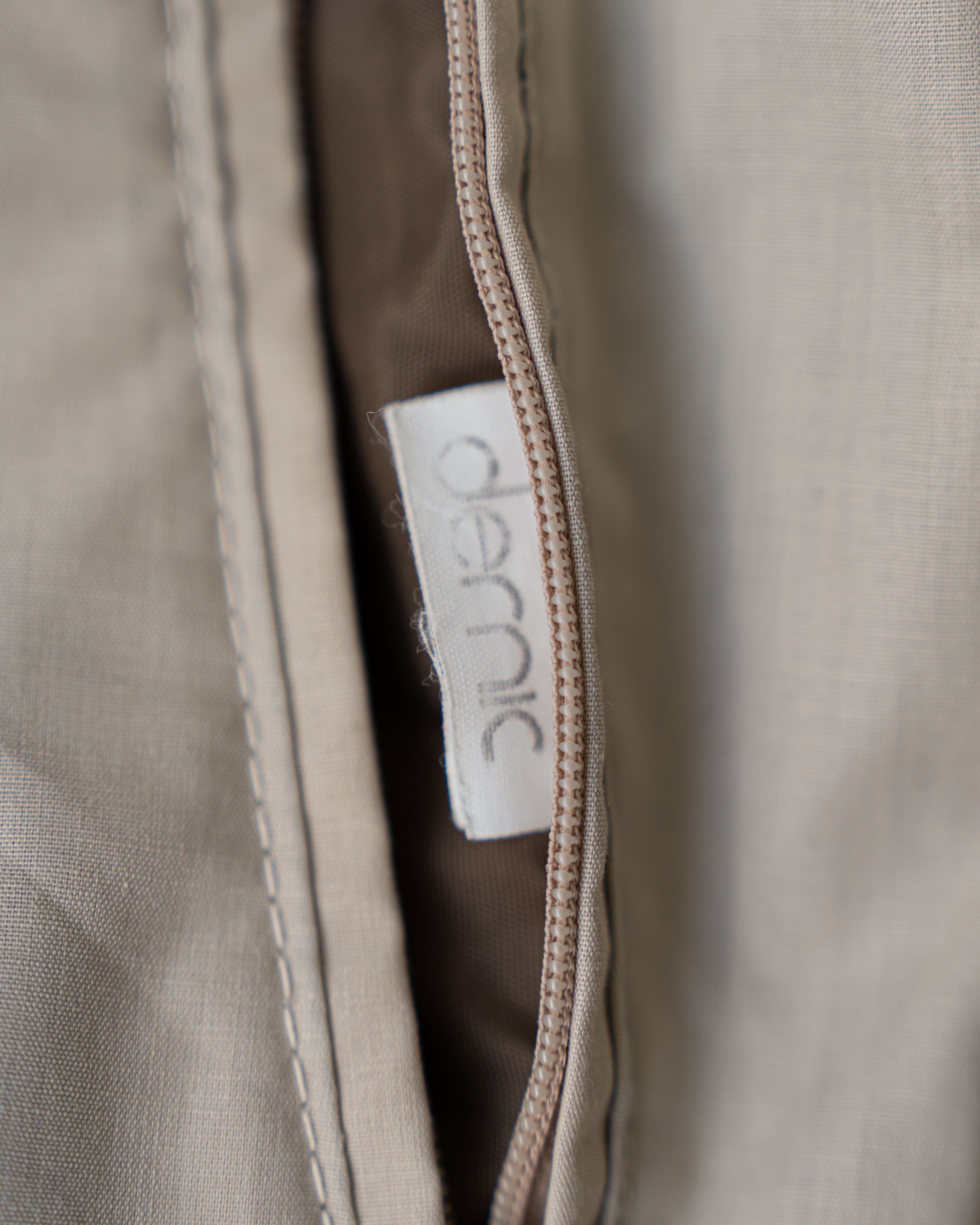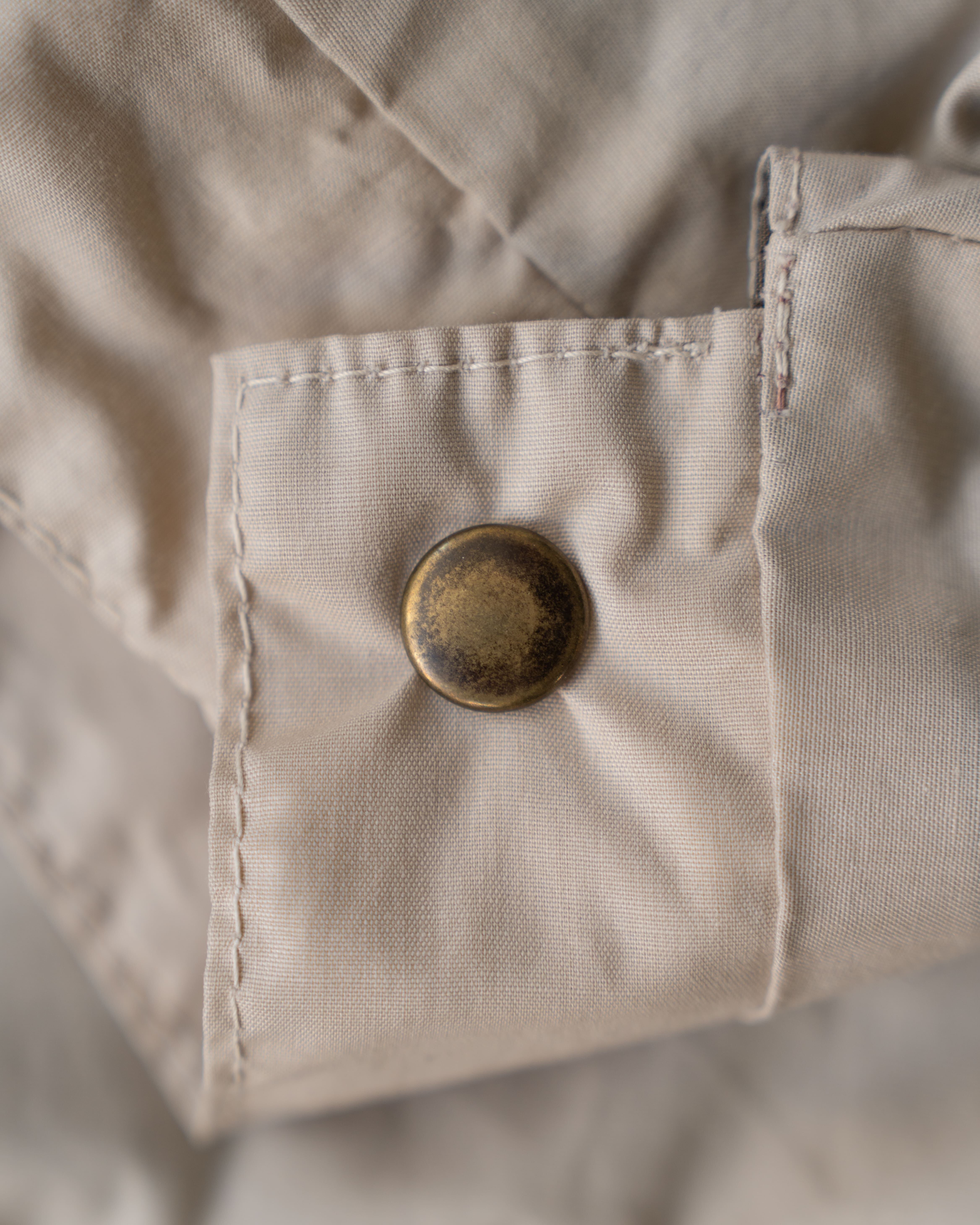 一見するとデザイン性の高い切り替えブルゾンですが、実はリバーシブル仕様になっているのも大きなポイント。裏返すと、装飾を抑えたシンプルなベージュカラーのブルゾンとして着用でき、その日の気分や合わせるスタイルに応じて表情を変えられます。