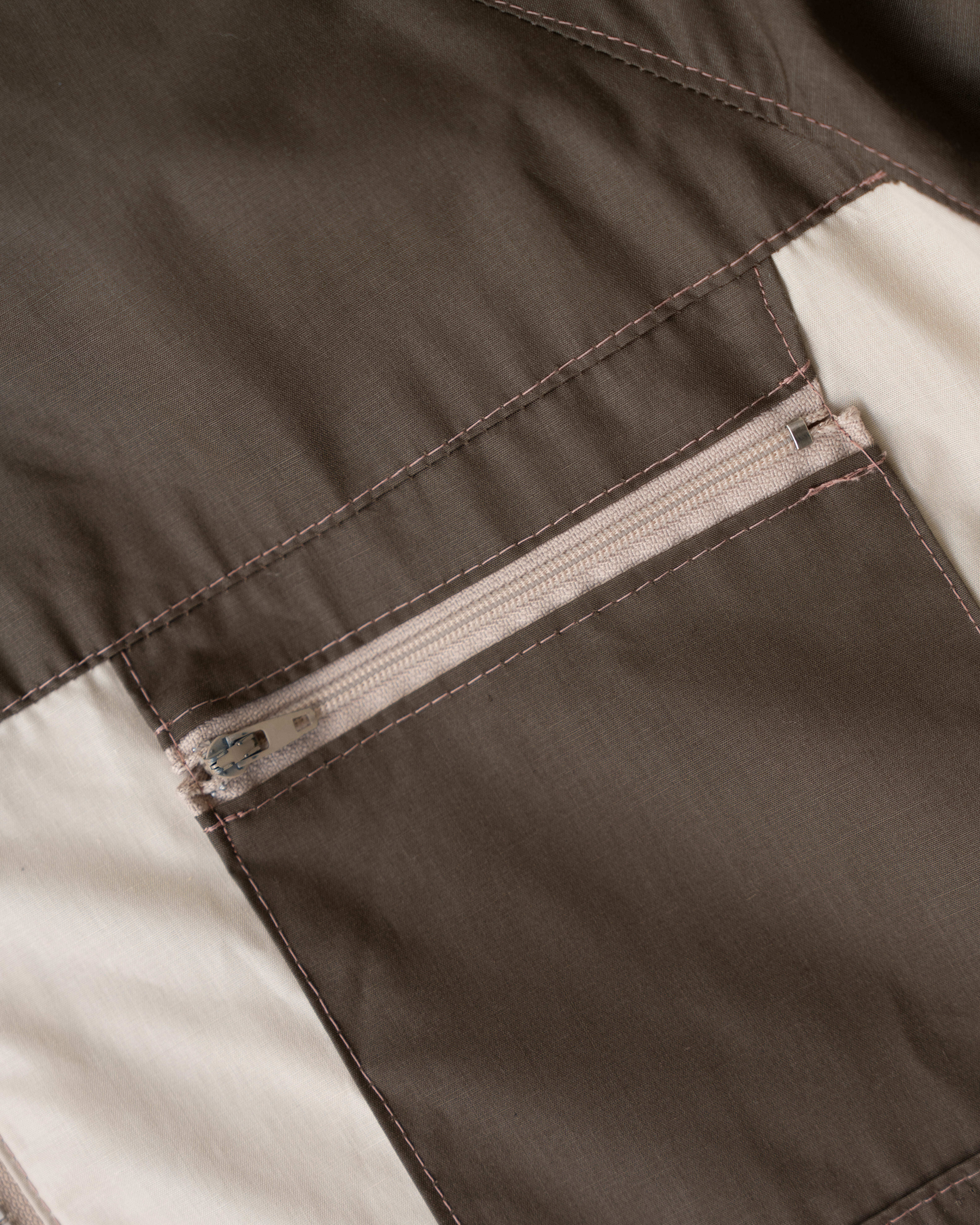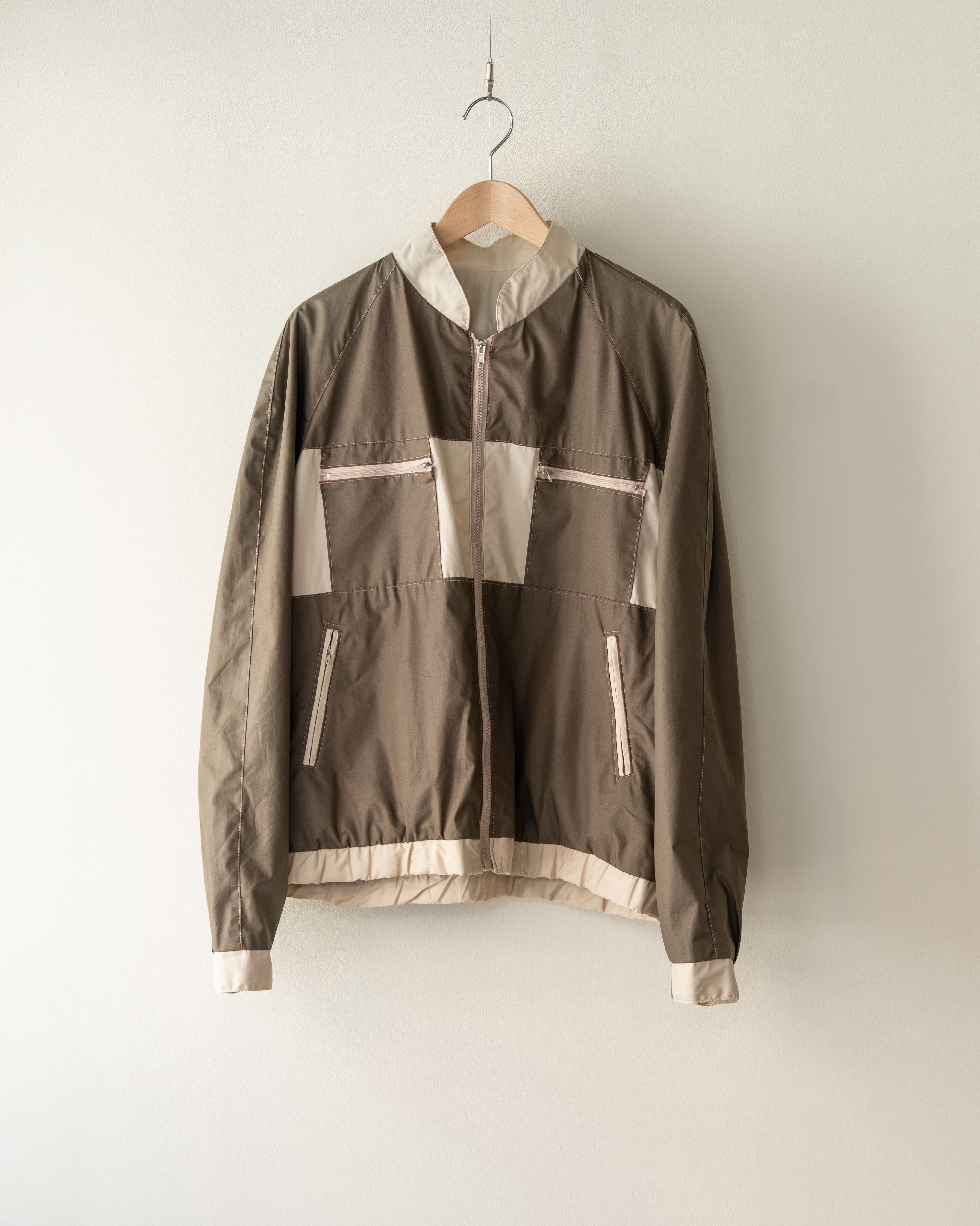 イタリアメイドのライトウェイトリバーシブルブルゾン。表面はベージュとブラウンの切り替えデザインが特徴的で、落ち着いたトーンの中に程よいアクセントが効いた一着です。切り替えによる立体感があり、シンプルながらもしっかりと存在感があります。