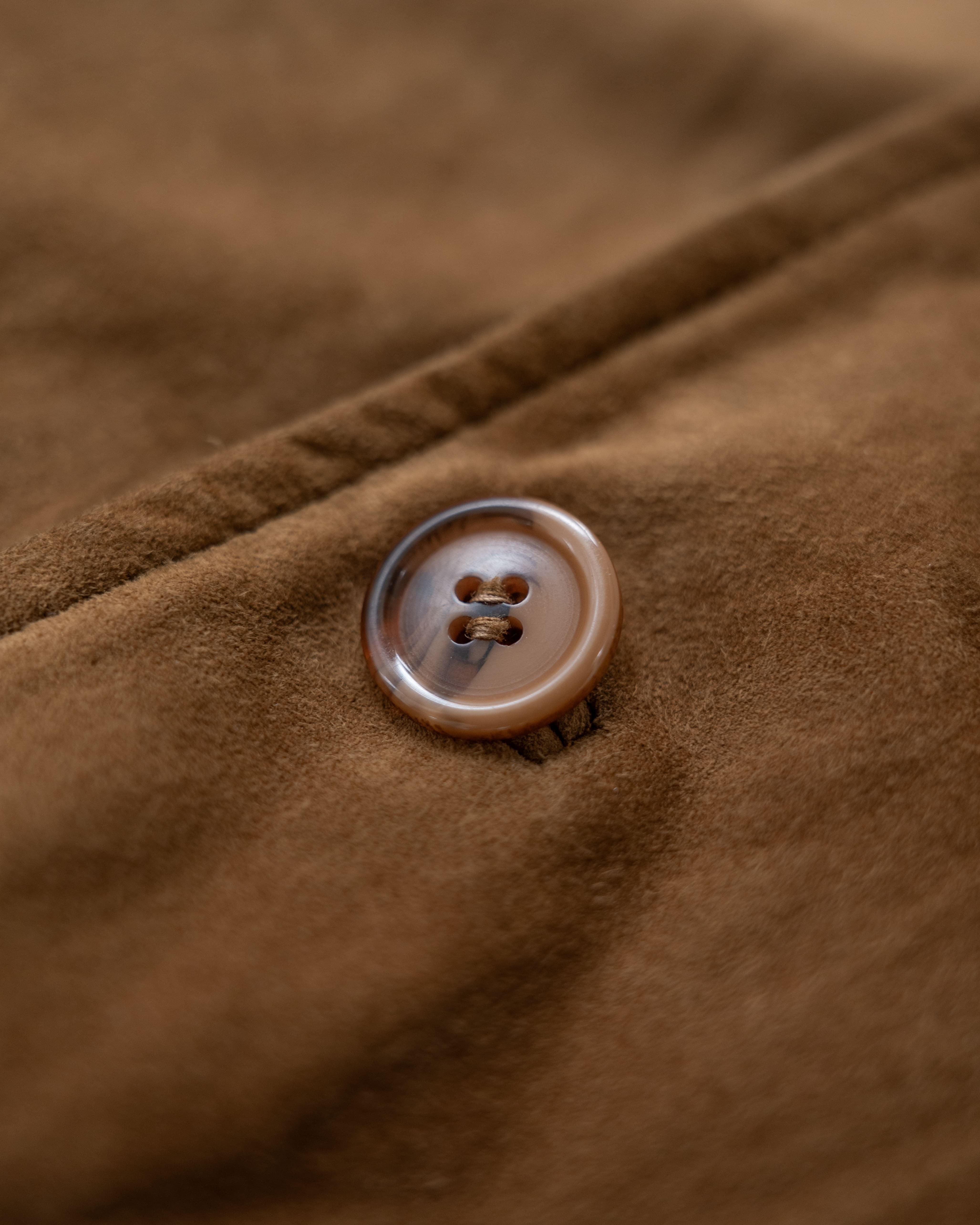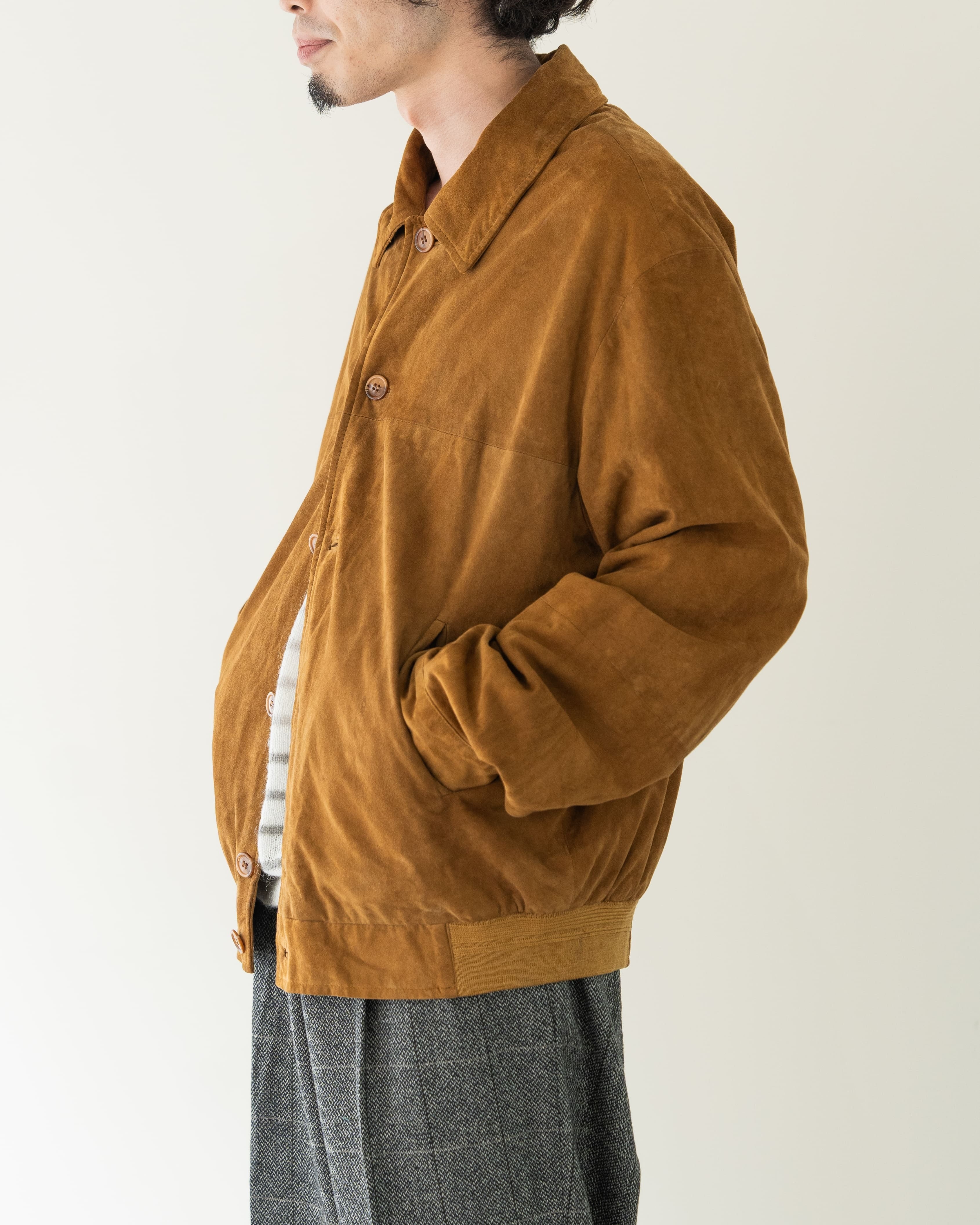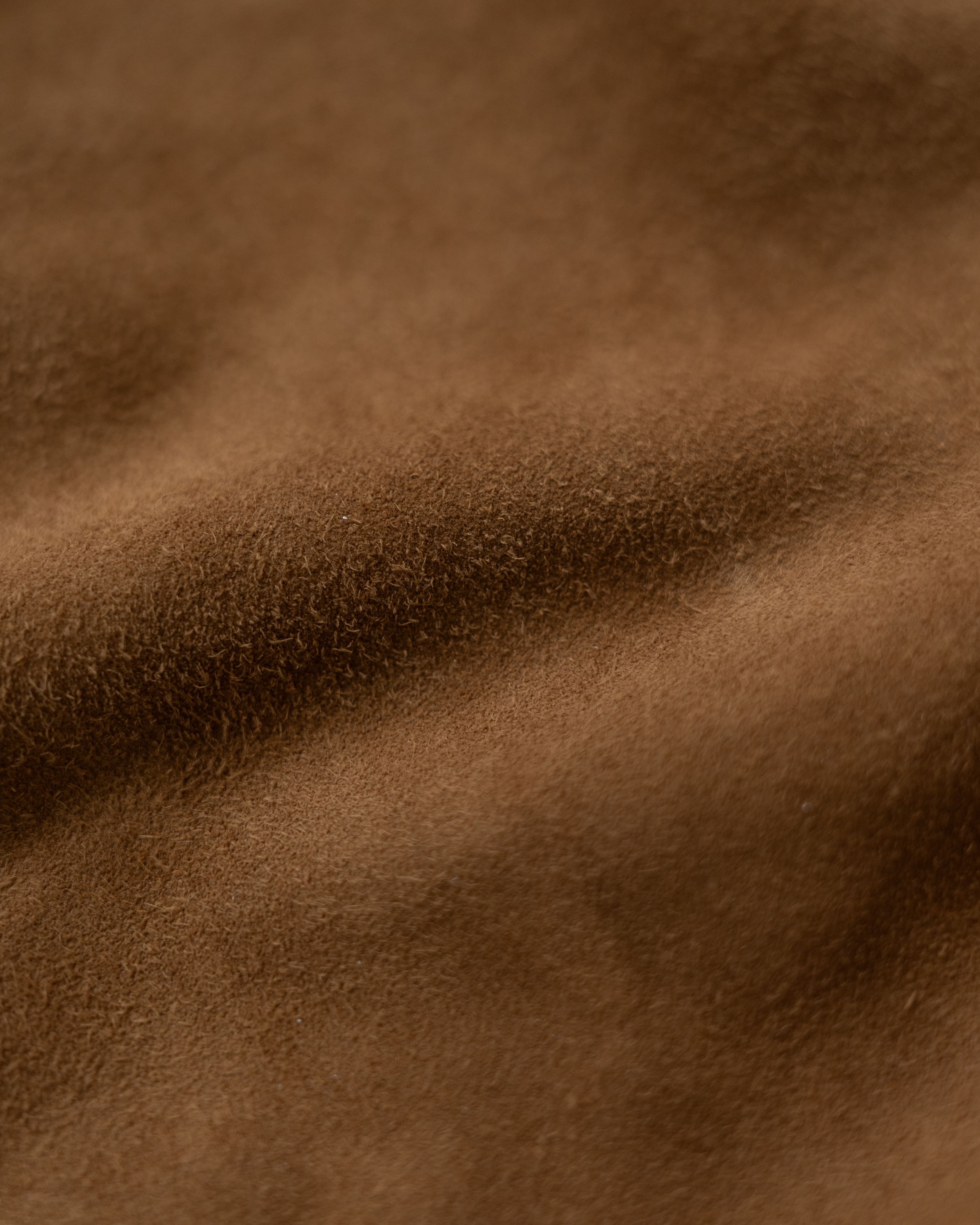 素材にはスウェードレザーを使用しており、レザー特有のハードさや野暮ったさを感じさせない柔らかな質感。しなやかで軽い着心地なので、デイリーに取り入れやすい一着です
