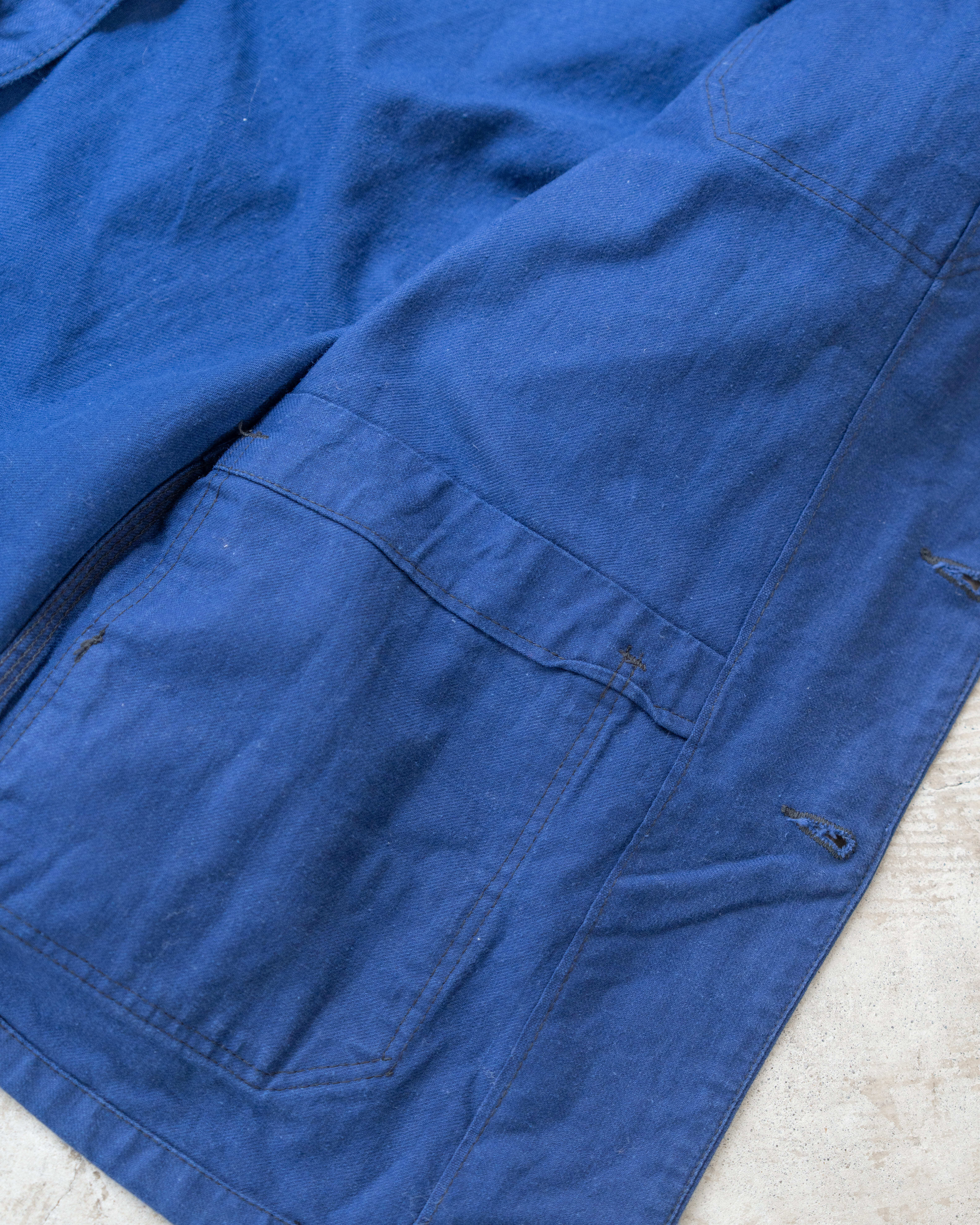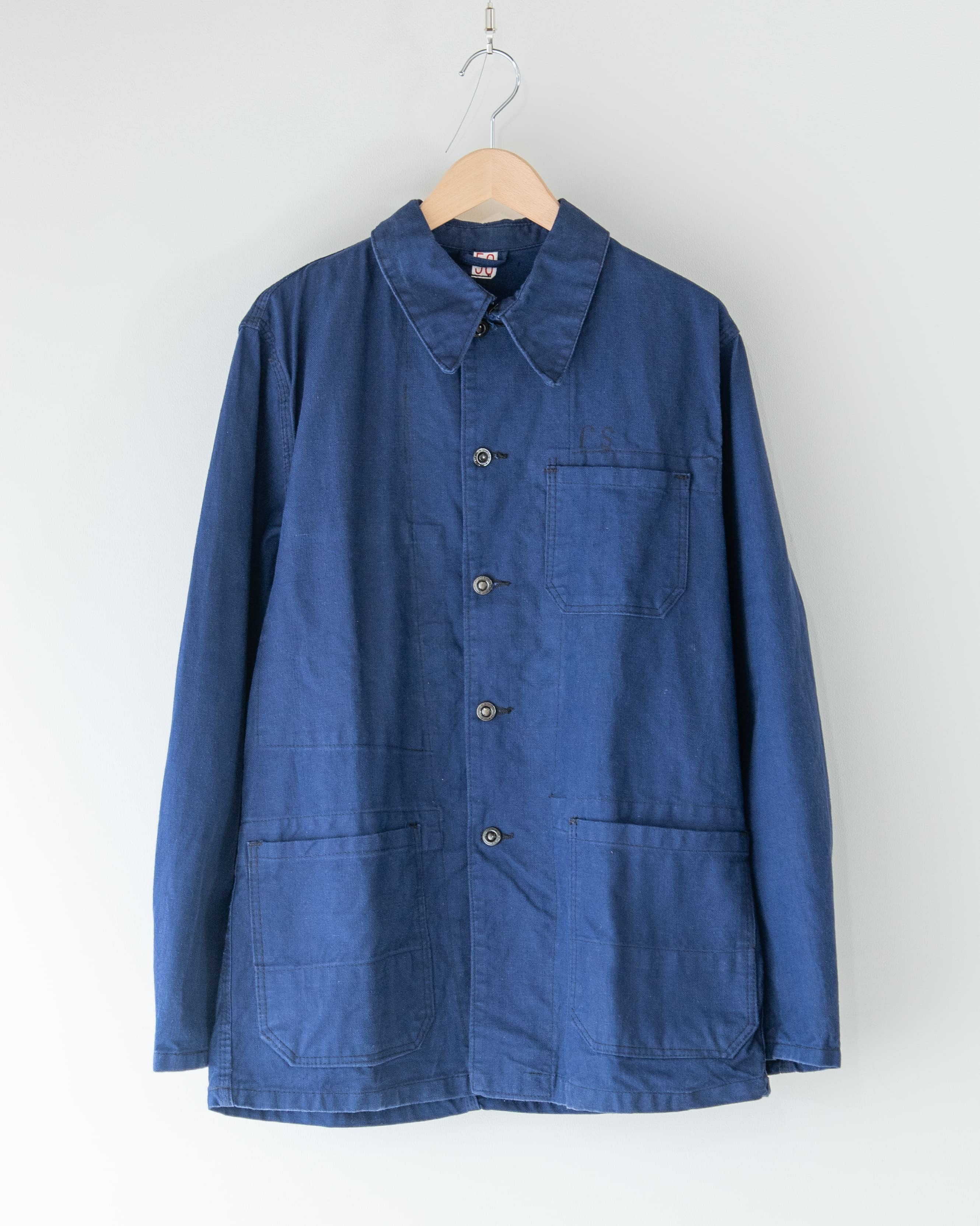 ドイツのワークジャケットとしてはやや古めの50年代という点も魅力的で、定番のヘリンボーンではなくコットンツイル生地を採用しているのも少し珍しいポイント。フレンチワークのツイルに比べるとよりキツく、密に織られており、ハリのあるタフな質感が特徴です。同じツイルでも国の違いによる表情の差を楽しめるのは、ユーロワークならではの面白さだと思います。